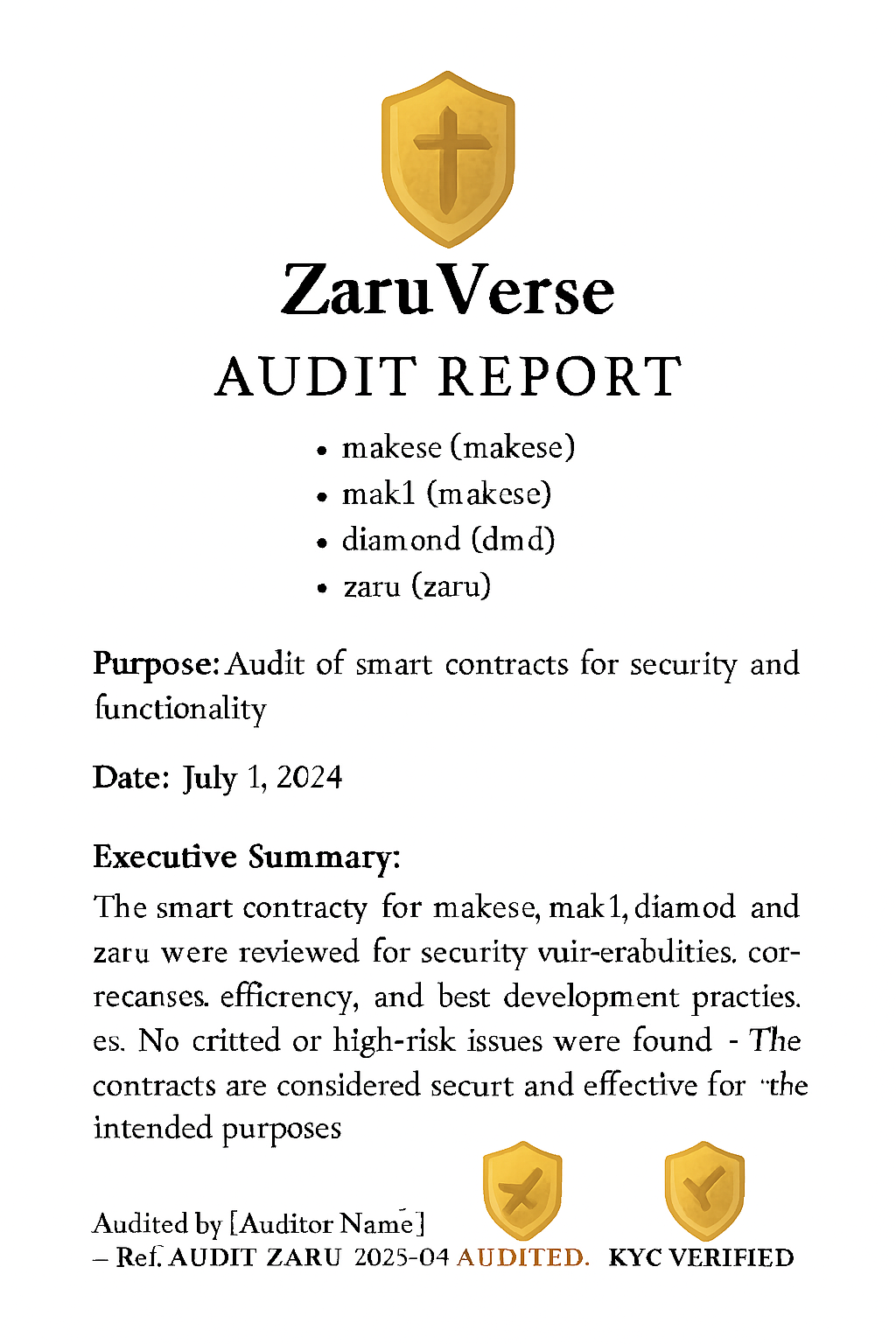 Zaruverse Protocol has been independently audited and verified for smart contract integrity, token allocation, and ecosystem compliance.